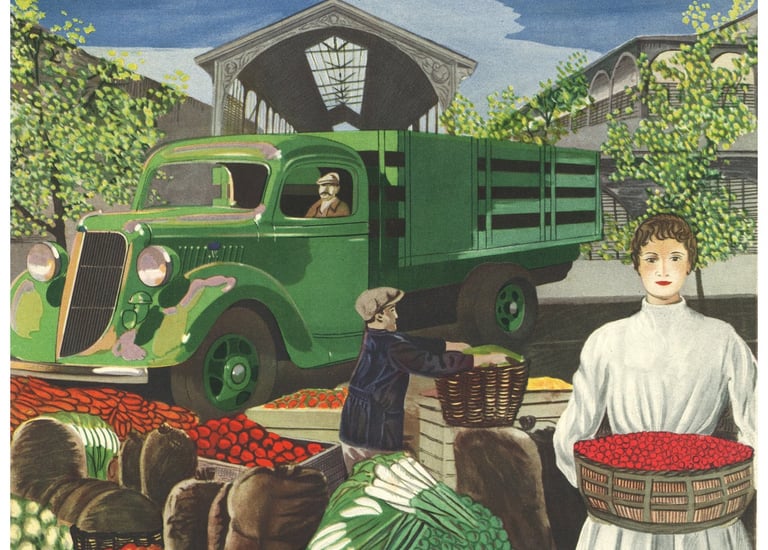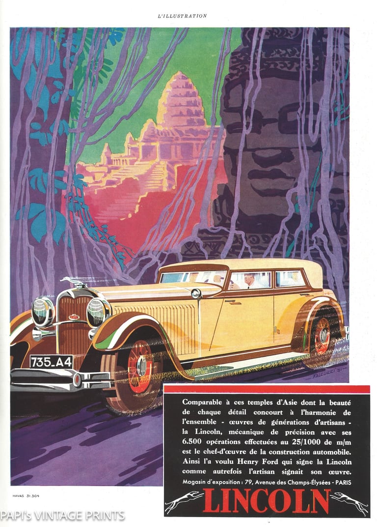Vibrant vintage colour prints from the era, ranging from French scenes to luxury fashion and exotic travel.