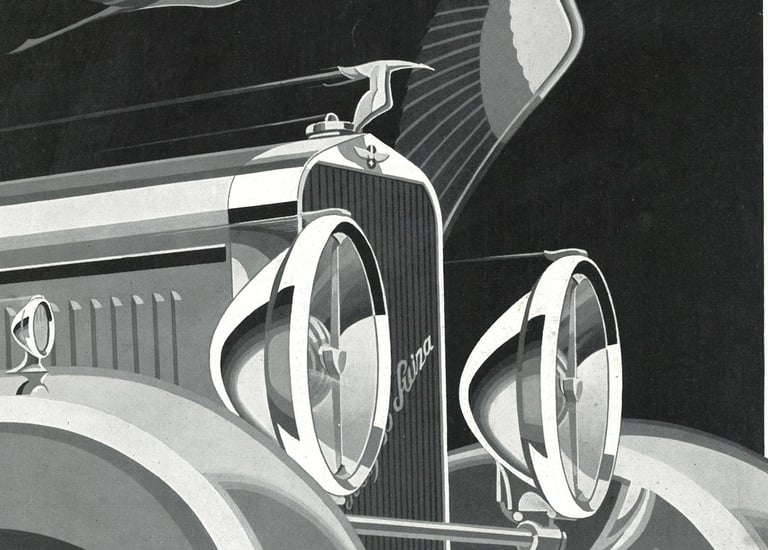 Striking images of cars in the style of Art Deco and Modern Graphic Design from the 20s and 30s.